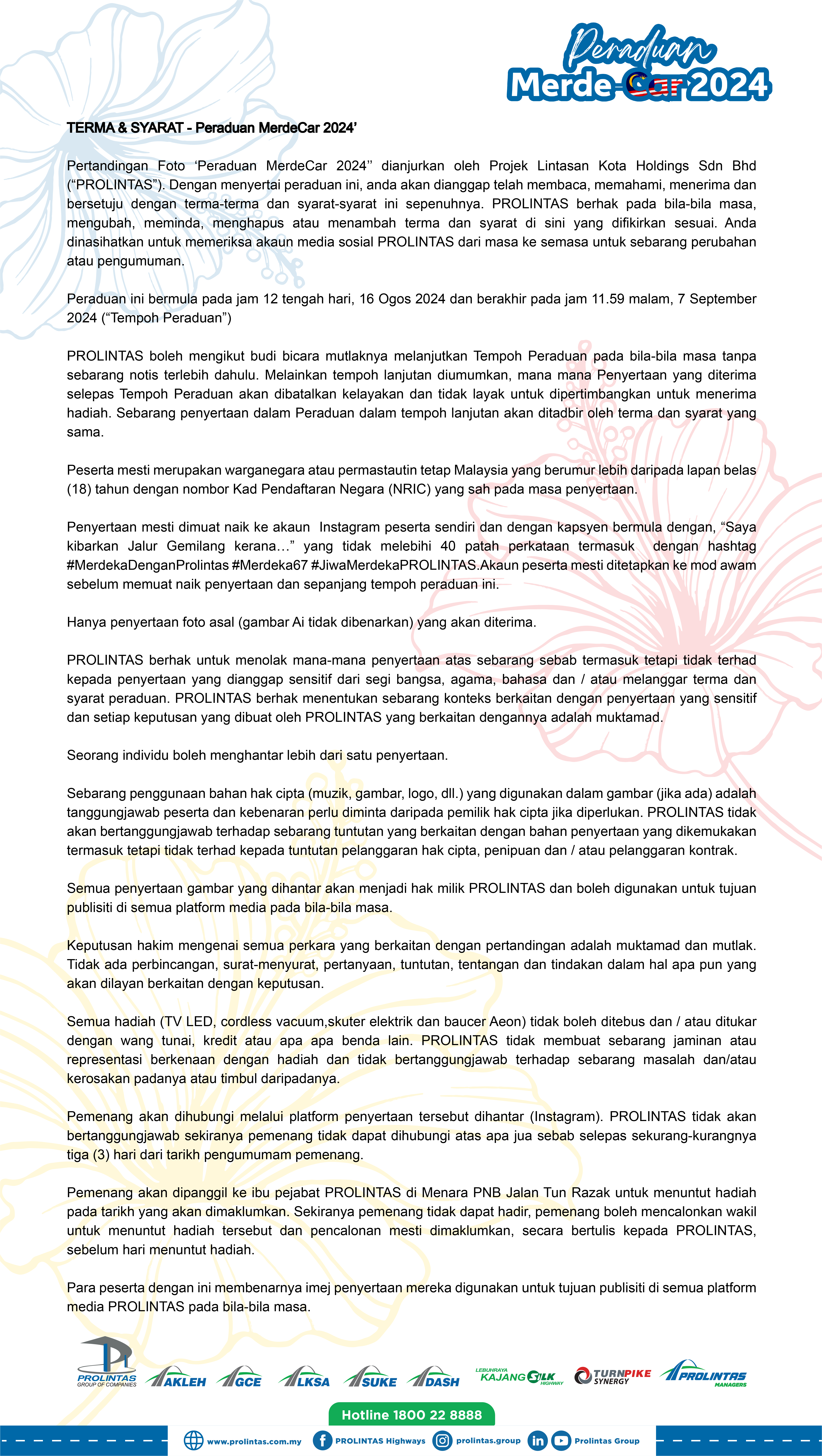 #MerdekaDenganPROLINTAS #Merdeka67 #MalaysiaMadani #JiwaMerdeka